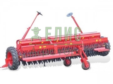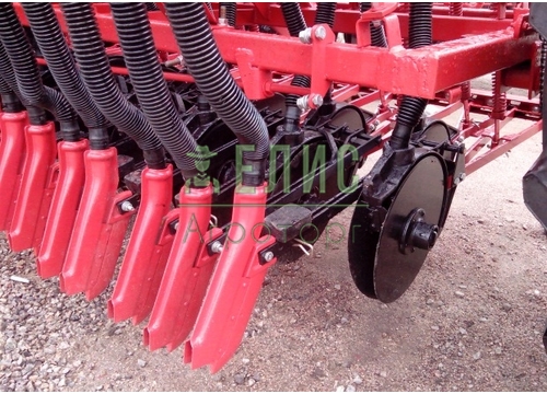 Сеялка из основных бункеров через дисковые сошники осуществляет высев семян зерновых и зернобобовых культур, а также средне сыпучих (эспарцет, житняк, овсяница) и несыпучих (костер, райграс и др.) семян трав.